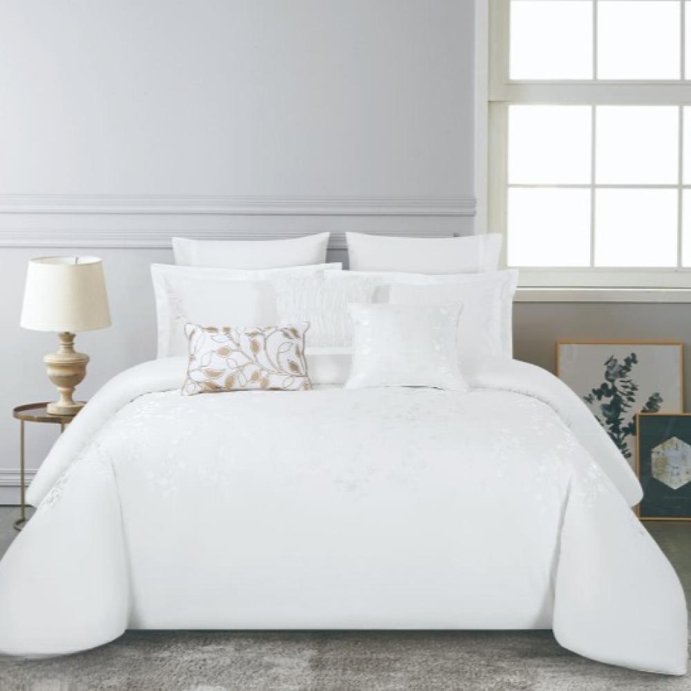 طقم لحاف ملكي مزدوج 9 قطع بتصميم زهري ناعم وألوان هادئة ليمنح غرفتك مظهراً فاخراً وإحساساً بالراحة المثالية.