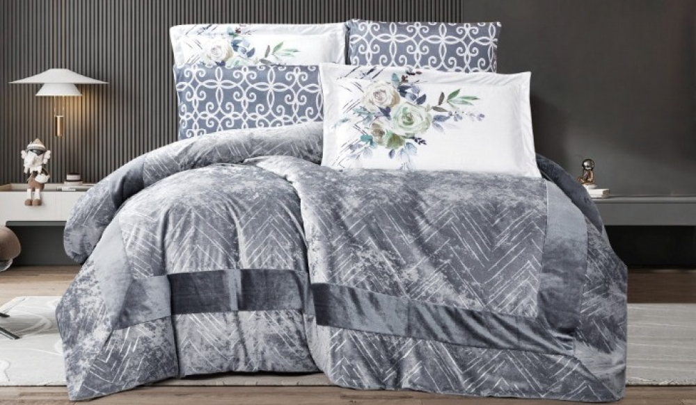 - التصميم: لحاف بنمط رقيق يشبه الترخيم (Marble Effect) برسومات هادئة متناغمة.