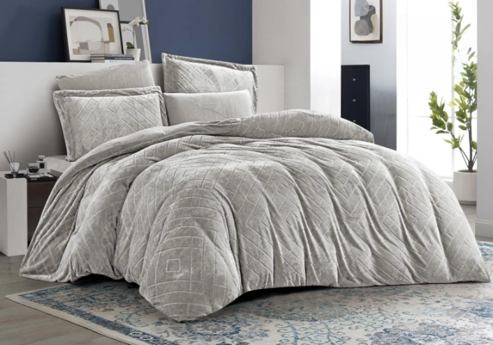 - التصميم: نقشة هندسية أنيقة بملمس بارز تضيف عمقاً وجاذبية للمفرش.
