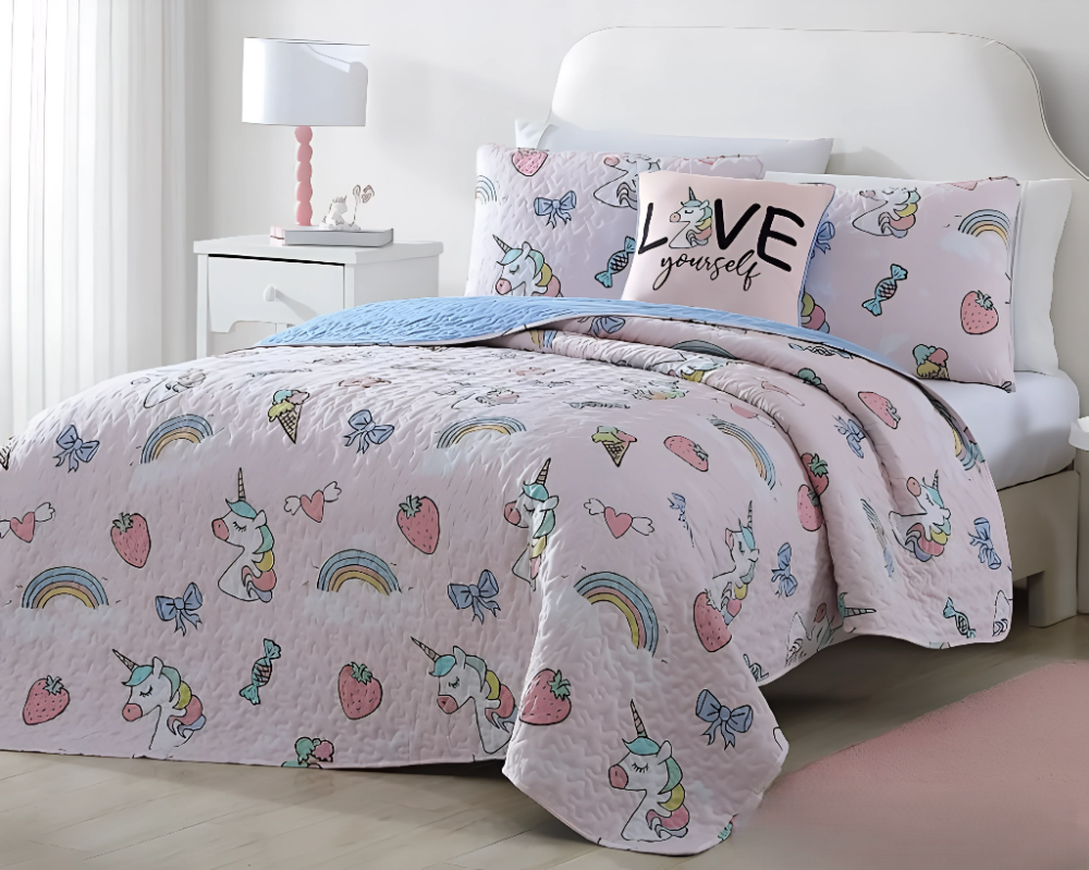 مفرش مفرد صيفي للأطفال 4 قطع بخامة عملية وألوان زاهية تناسب غرف الأولاد والبنات.