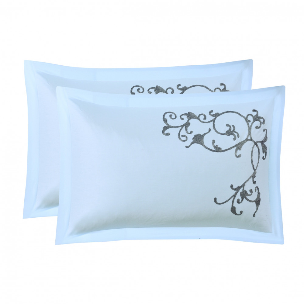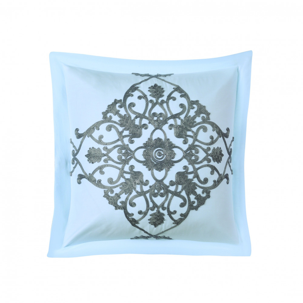 يتوسطها تطريز فاخر يعطي المفرش رونق وشكل خلاب ويضفي على غرفتك المزيد من الرقي