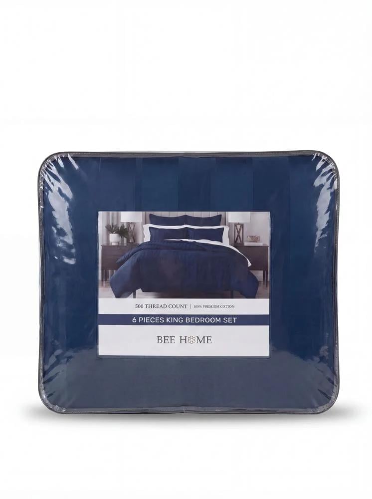 استمتع بتجربة نوم فندقية فاخرة مع طقم اللحاف الفندقي المقلم من OVR SLEPT بتصميم أنيق ولون كحلي فاخر يضفي لمسة راقية على غرفة النوم.