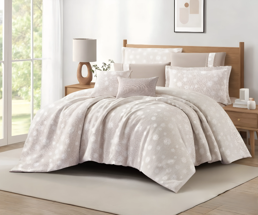 طقم لحاف ملكي مزدوج 8 قطع بلون بيج-LILY01
