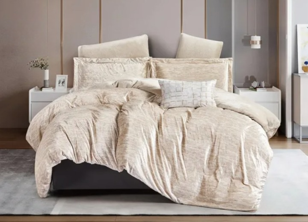 - التصميم: لحاف بنمط رقيق يشبه الترخيم (Marble Effect) برسومات هادئة متناغمة.