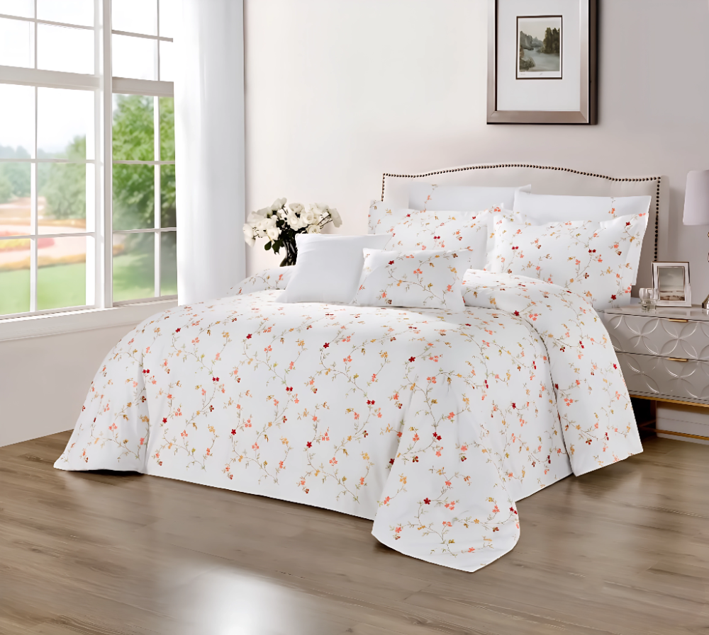 طقم لحاف مزدوج لون ابيض 8 قطع - POPPY01